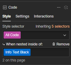 In early 2024, Webflow added the ability to style specific text as code.&#x20;
